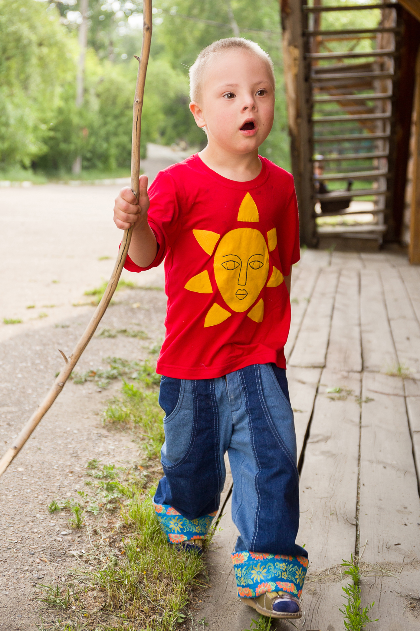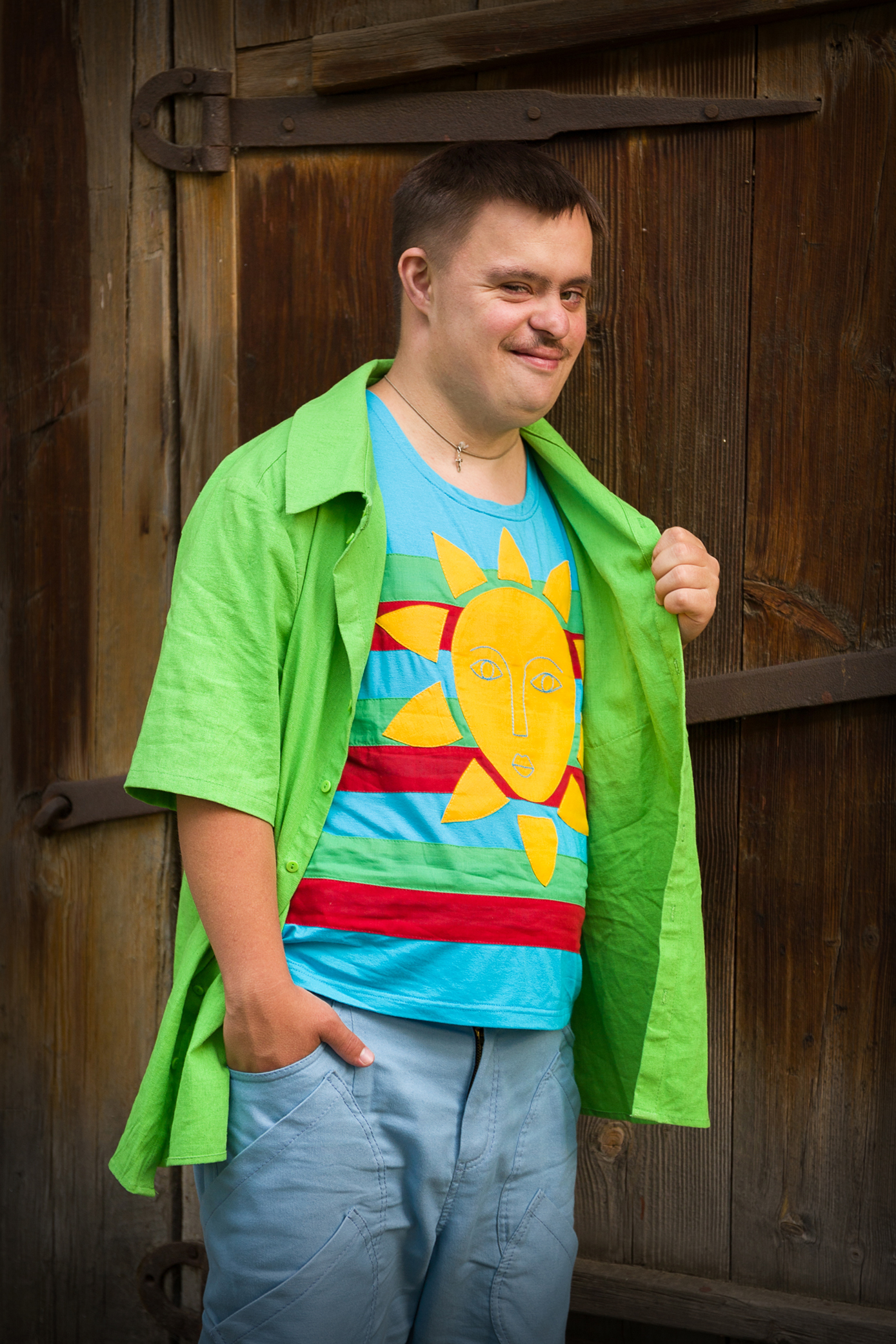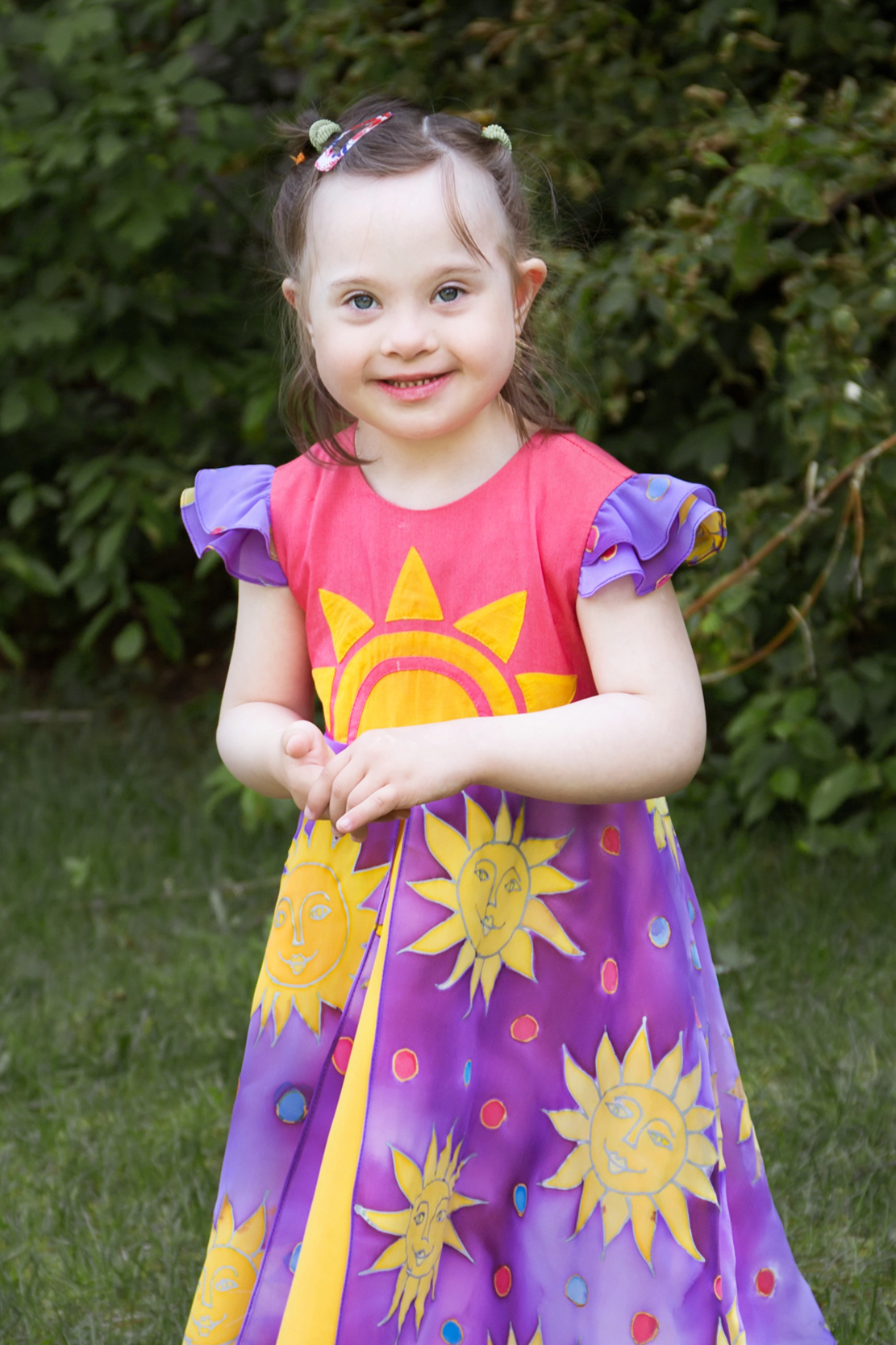 В коллекцию вошли модели, созданные для солнечных детей и их родителей. В каждом луке присутствует изображение солнца в технике холодного батика или в технике текстильной аппликации. Также модели сшиты на сестер солнечных детей и взрослых молодых людей с синдромом Дауна.